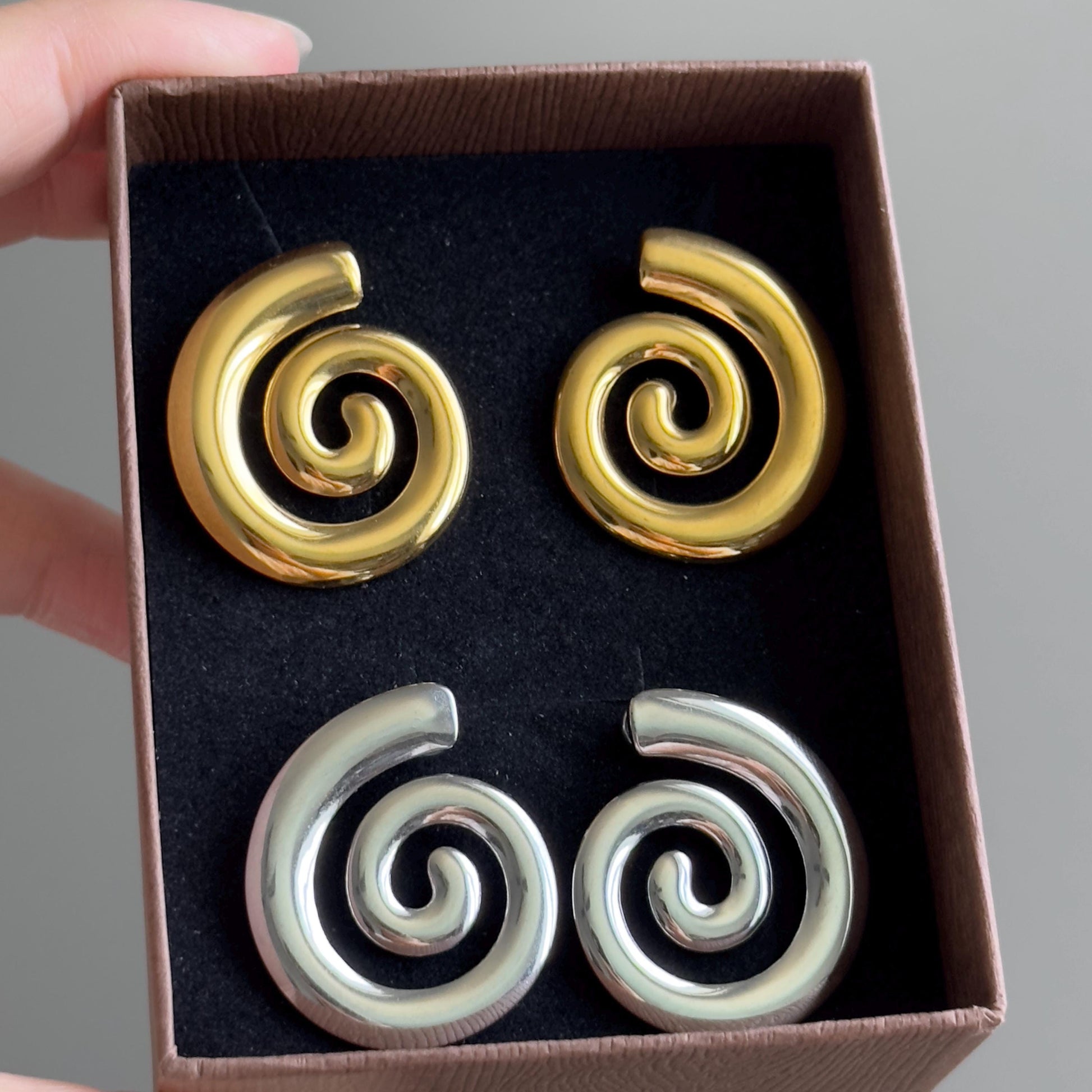 Bold Spiral Stud Earrings, Stainless Steel Swirl Earrings, Gold Silver Chunky Earrings, Modern Minimalist Statement Jewelry, Spiral Earrings
