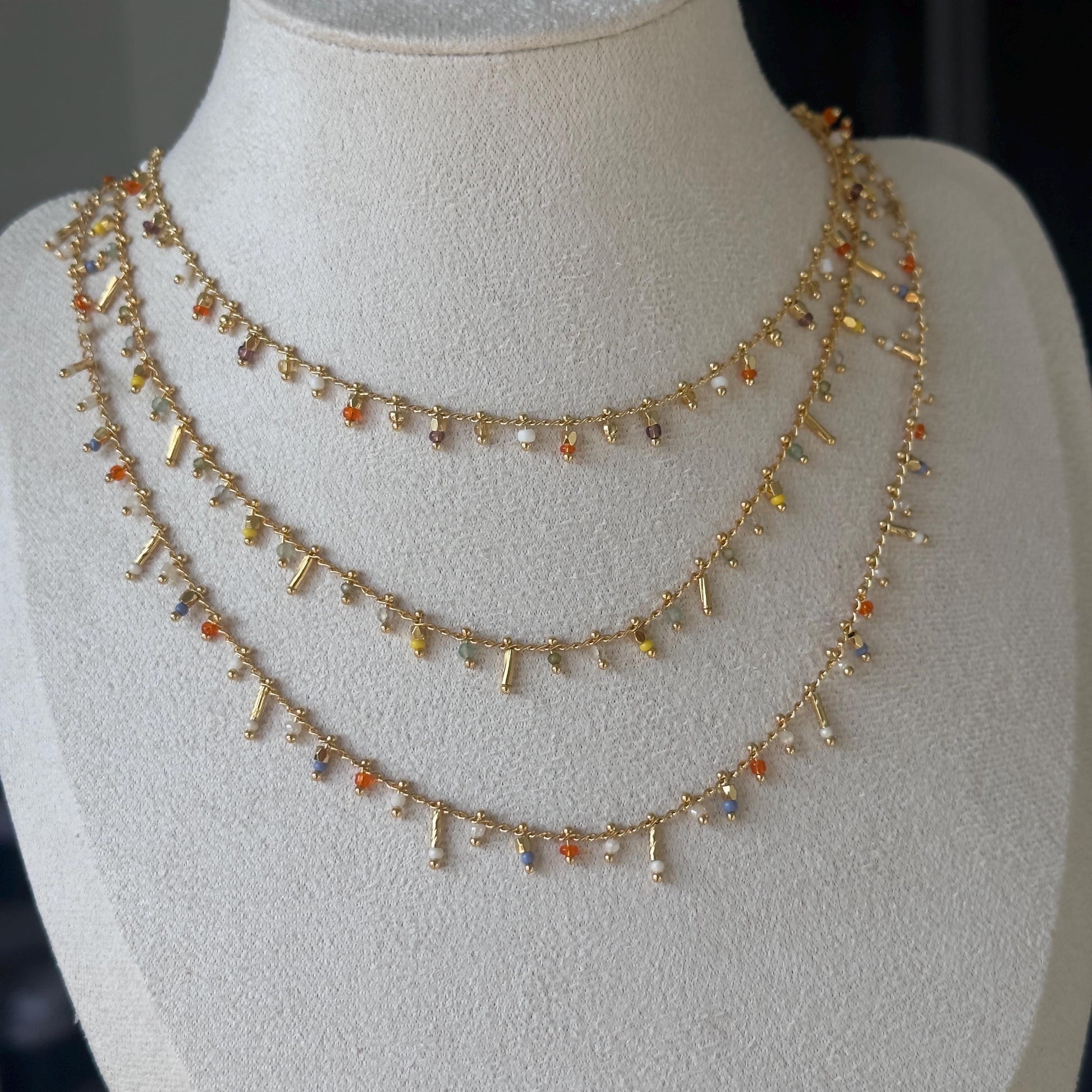 Crystal beads necklace, colorful beads necklace, beads necklace for layering, cute beaded necklace, beads chocker, 18k gold plated beads