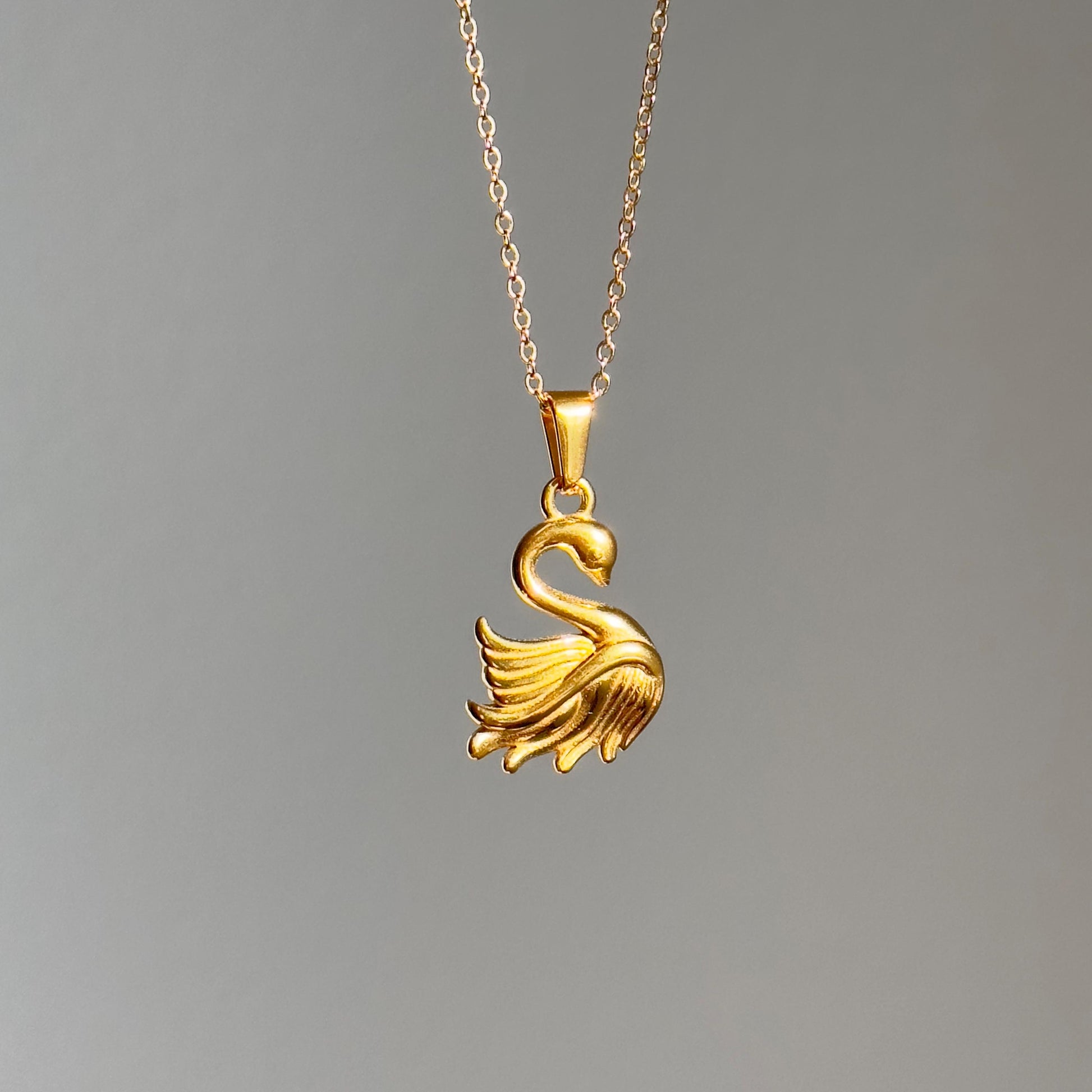 Elegant Gold-Plated Stainless Steel Swan Pendant Necklace