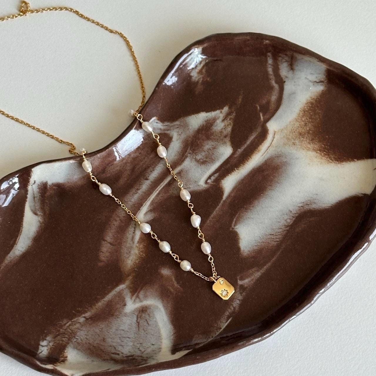 Freshwater Pearl Gold Star Pendant Necklace, Delicate Pearl Necklace