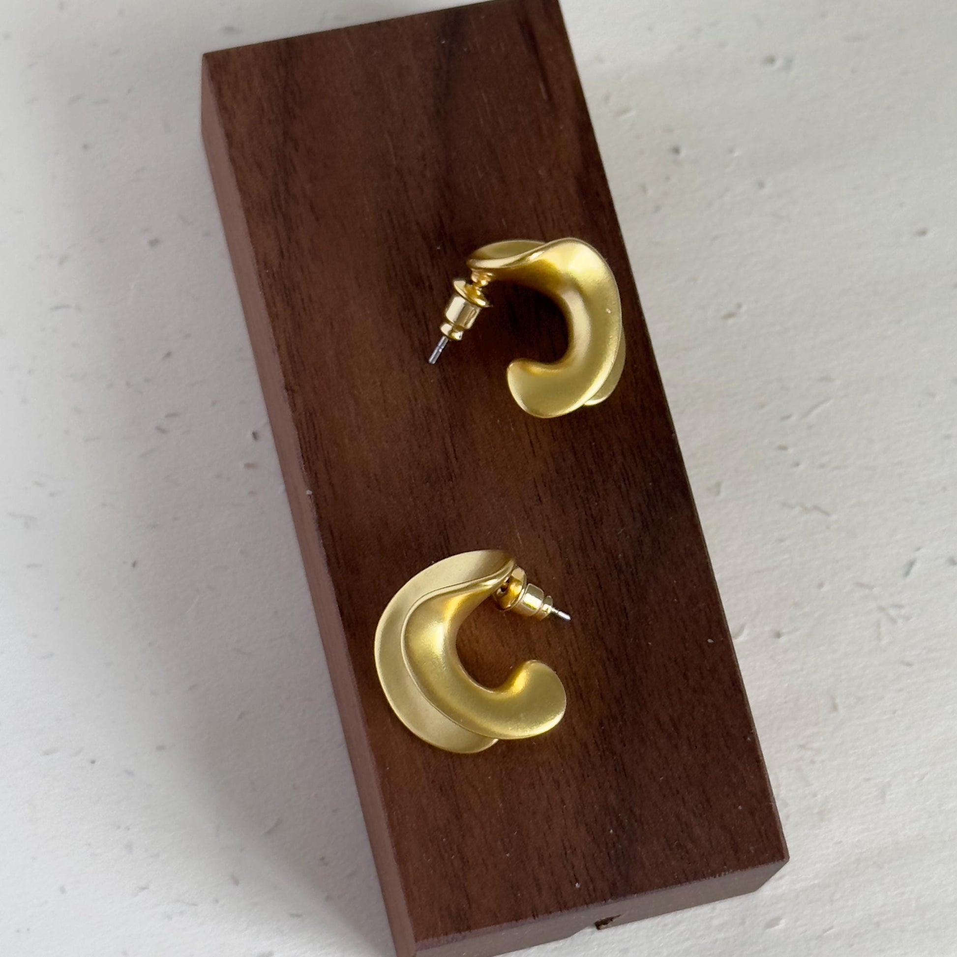 Gold Chunky Earrings, Bold Wave Stud Earrings, Retro Hoop Earrings, Layered Gold Earrings, Cute Matte Everyday Hoops, Vintage Style Hoops