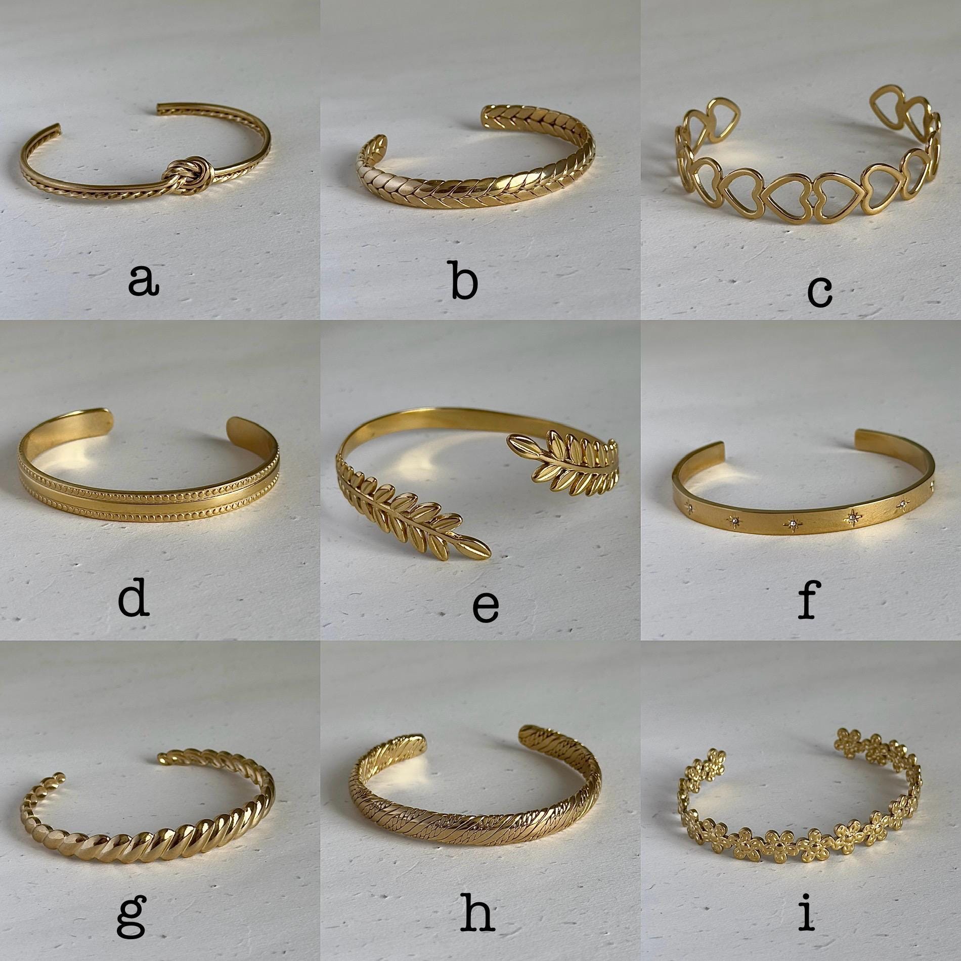 Add a touch of elegance to your wrist with these dainty 18K gold-plated cuff bracelets, available in a variety of nature-inspired and geometric designs. Whether you love hearts, florals, stars, or classic braided textures, there’s a style for every mood.