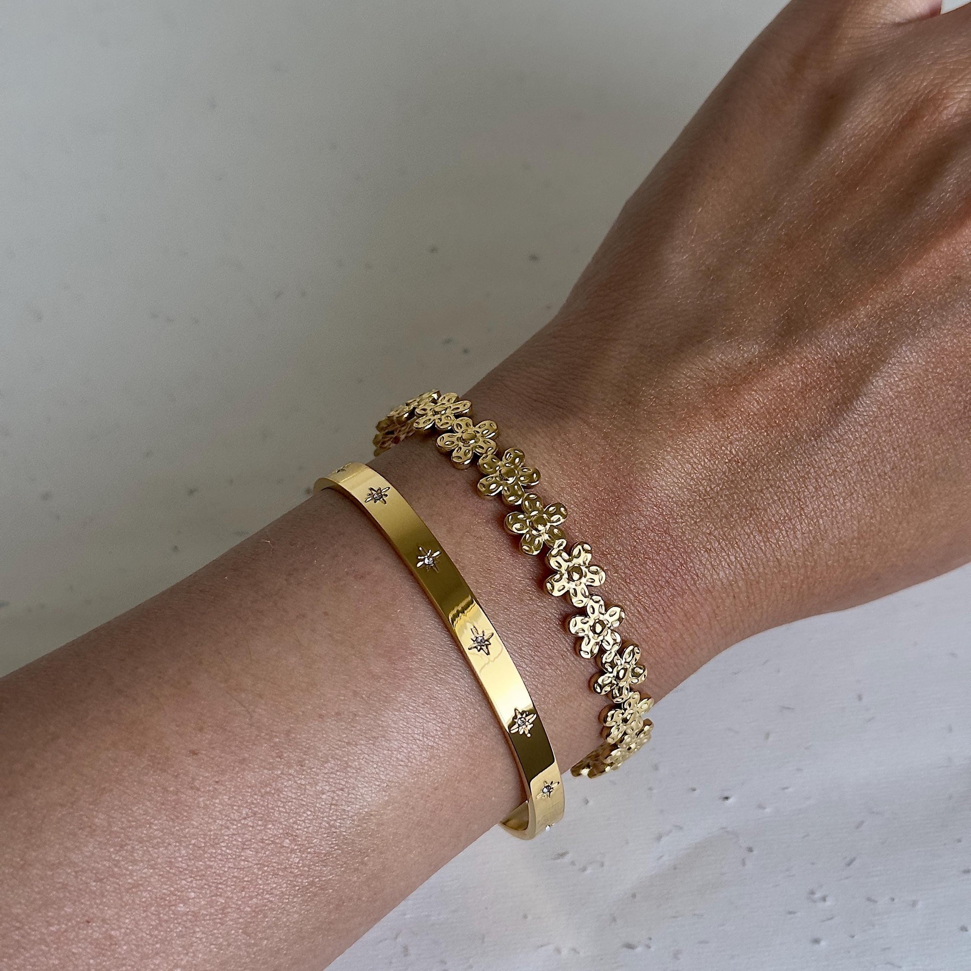 Gold Cuff Bracelet, Adjustable Gold Open Bangle, Gold Plated Bangle, Leaf Heart Star Floral Bangle, Stackable Minimalist Bangle Bracelet