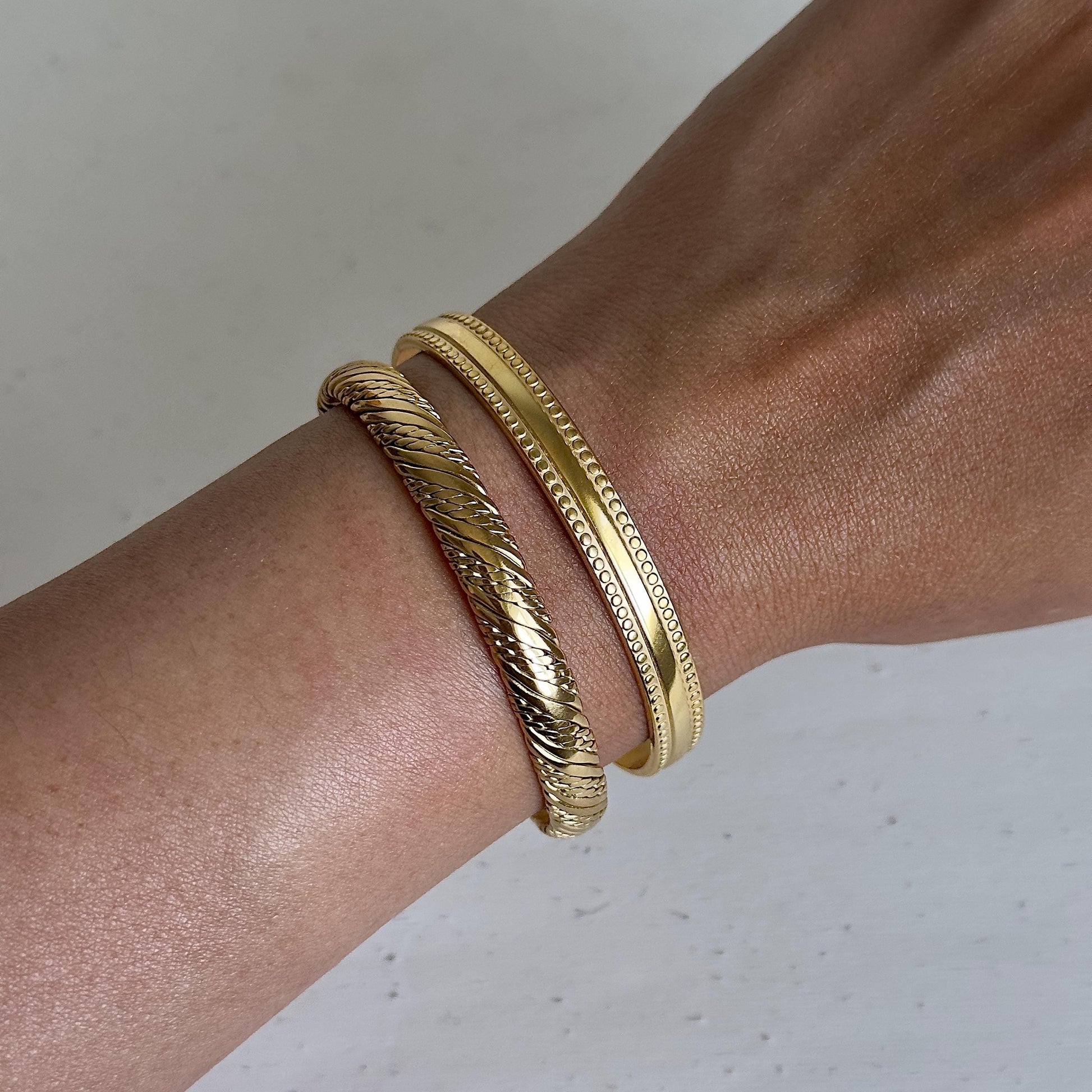 Each bangle features an open cuff design, making it easy to wear and adjust for the perfect fit. Wear one alone for a minimalist look, or stack multiple together for a bold, layered style. These bracelets are great for everyday wear and also make a lovely gift.