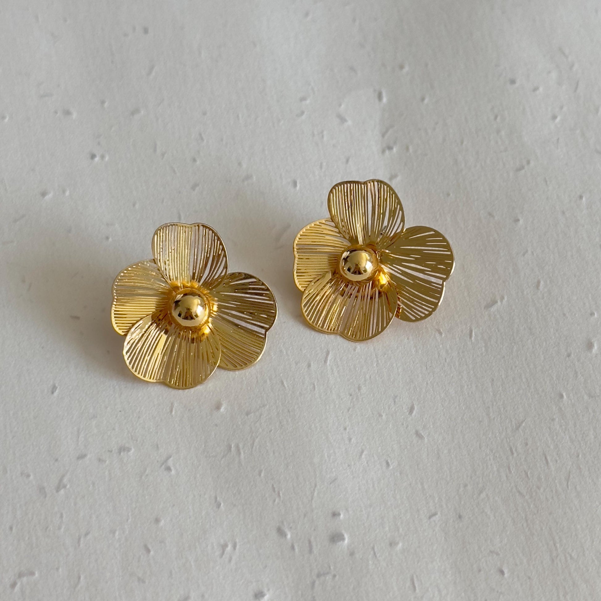 Add a touch of timeless elegance with these exquisite gold-plated wire flower earrings, designed with a double-layered 3D hollow structure for a delicate yet eye-catching look. Each petal is carefully crafted to create an airy, sculptural effect, and the center is adorned with a luminous pearl for a sophisticated