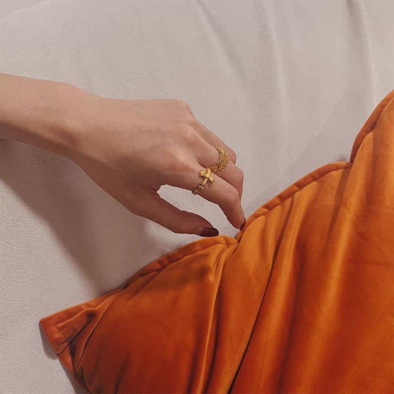Gold plated cross open ring