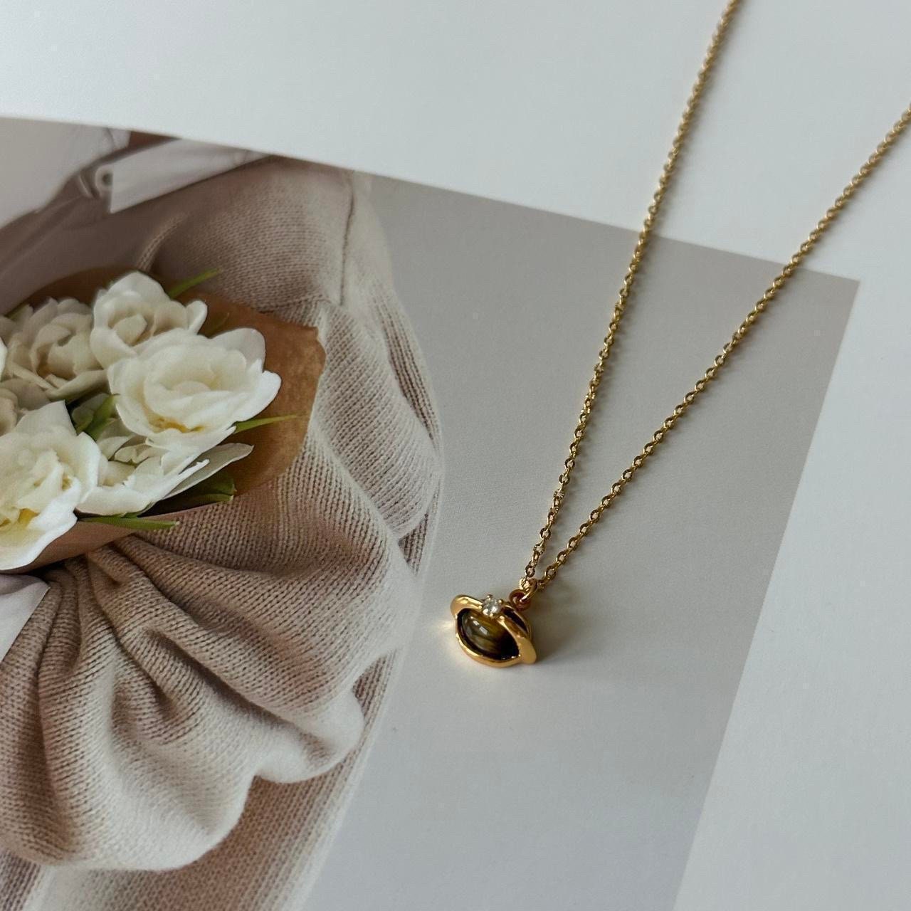Gold tiger eye natural stone planet pendant necklace