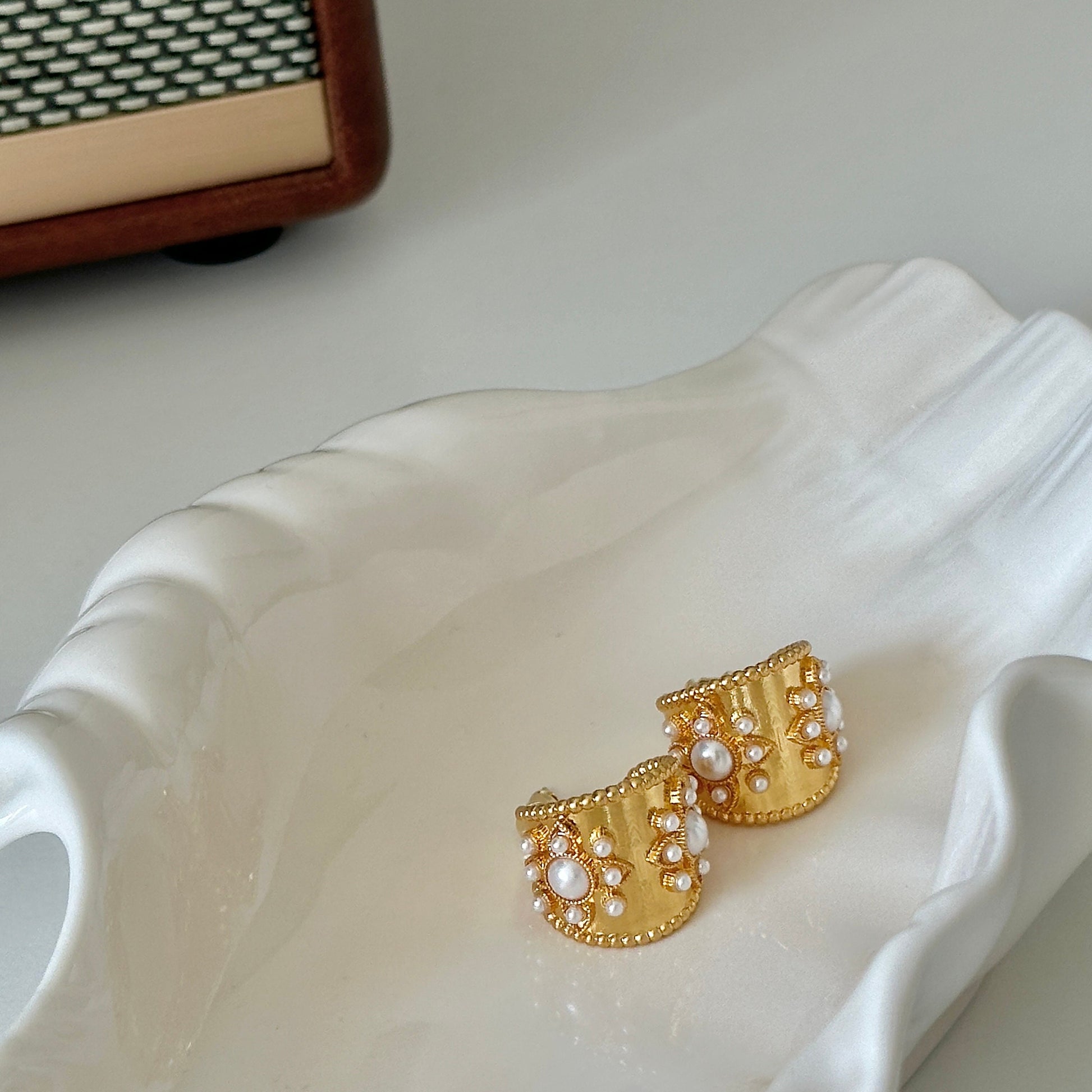 Material: gold plated brass, glass pearl