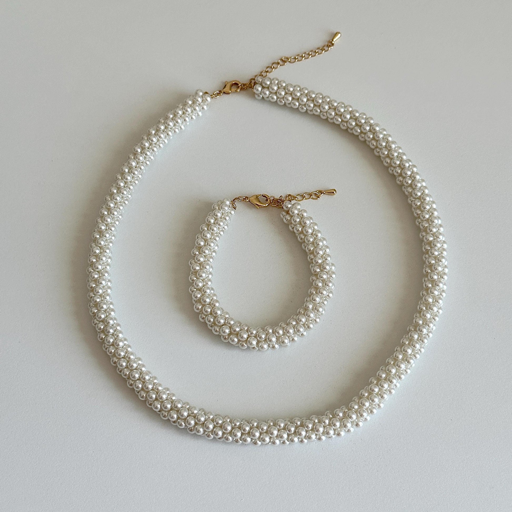Handmade Twisted Pearl Necklace and Bracelet Set | Braided Wheat Design | Faux Pearl Jewelry | Elegant Jewelry for Women | Gift for Her
