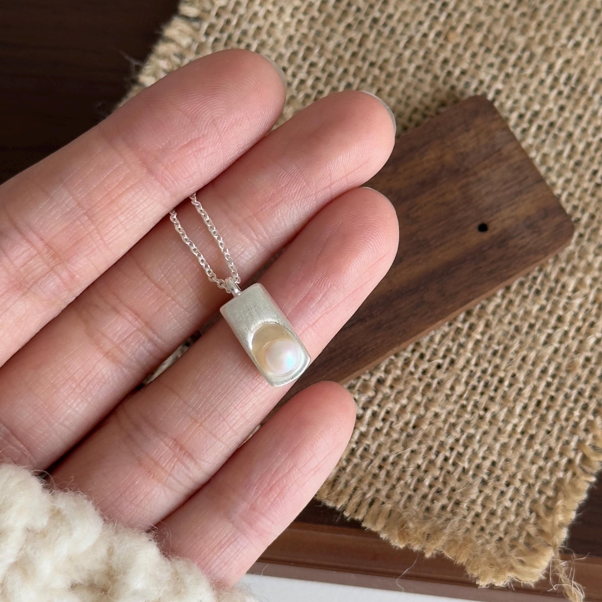 Minimalist Pearl Pendant Necklace, Gold & Silver Matte Geometric Freshwater Pearl Necklace, Dainty Gift for Her, Cute Pearl Pendant Necklace