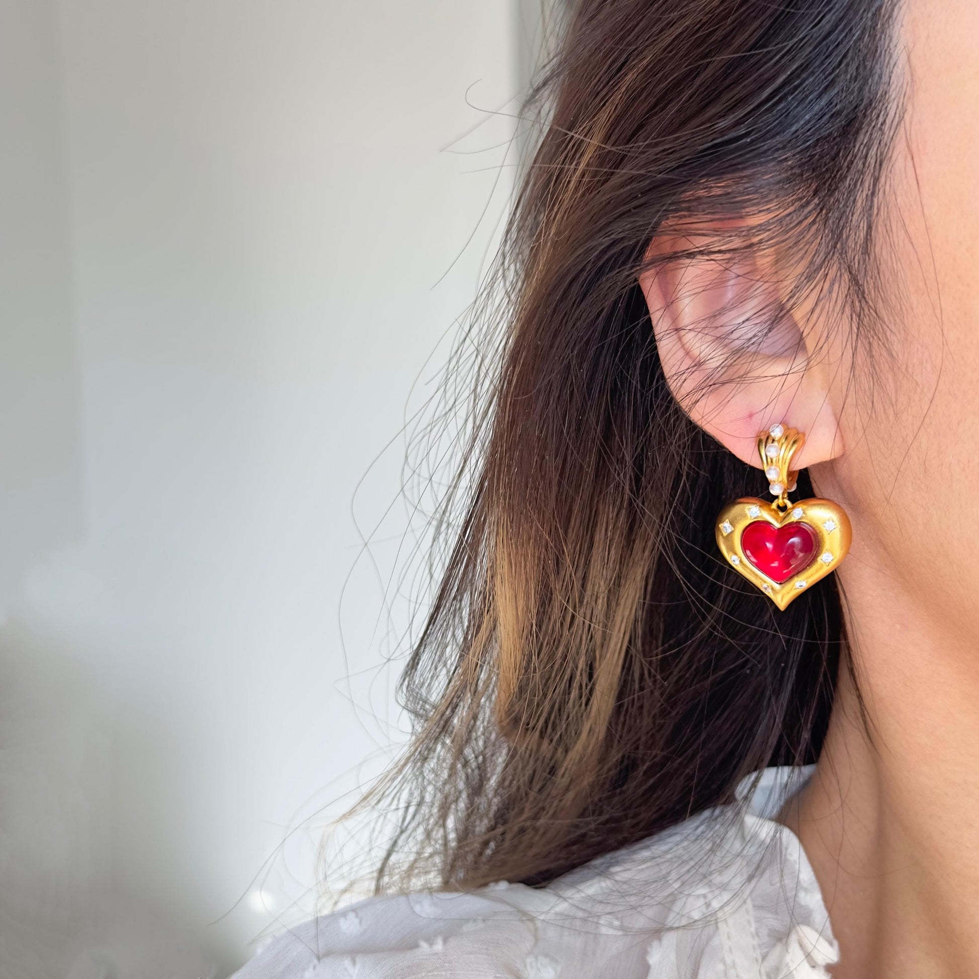 Gold plated, zirconia, gemstone, glass pearl.