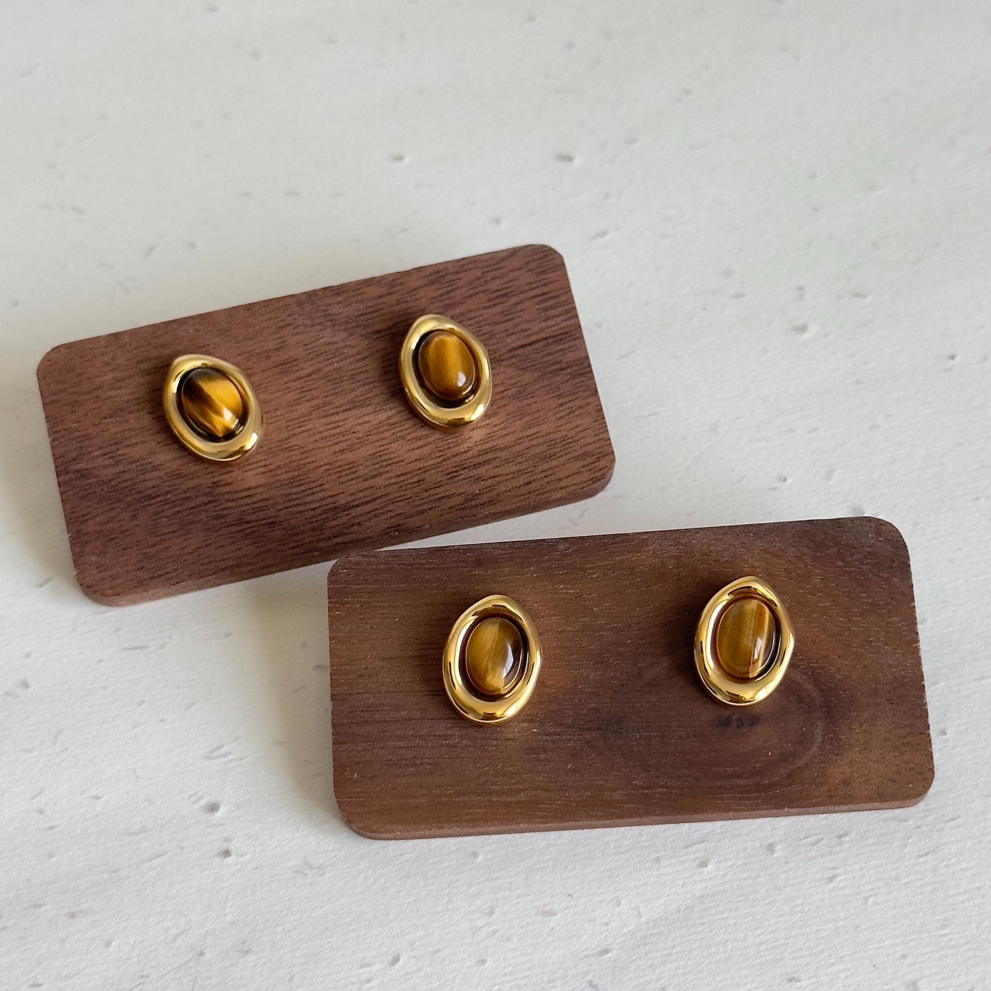 Add a touch of warm elegance to your everyday look with these tiger eye stud earrings. Set in a fluid, organic-shaped 18K gold-plated frame, the oval gemstones display natural golden-brown hues and subtle chatoyancy—no two stones are exactly the same. Their minimalist yet striking design makes them perfect for both casual wear and special occasions.